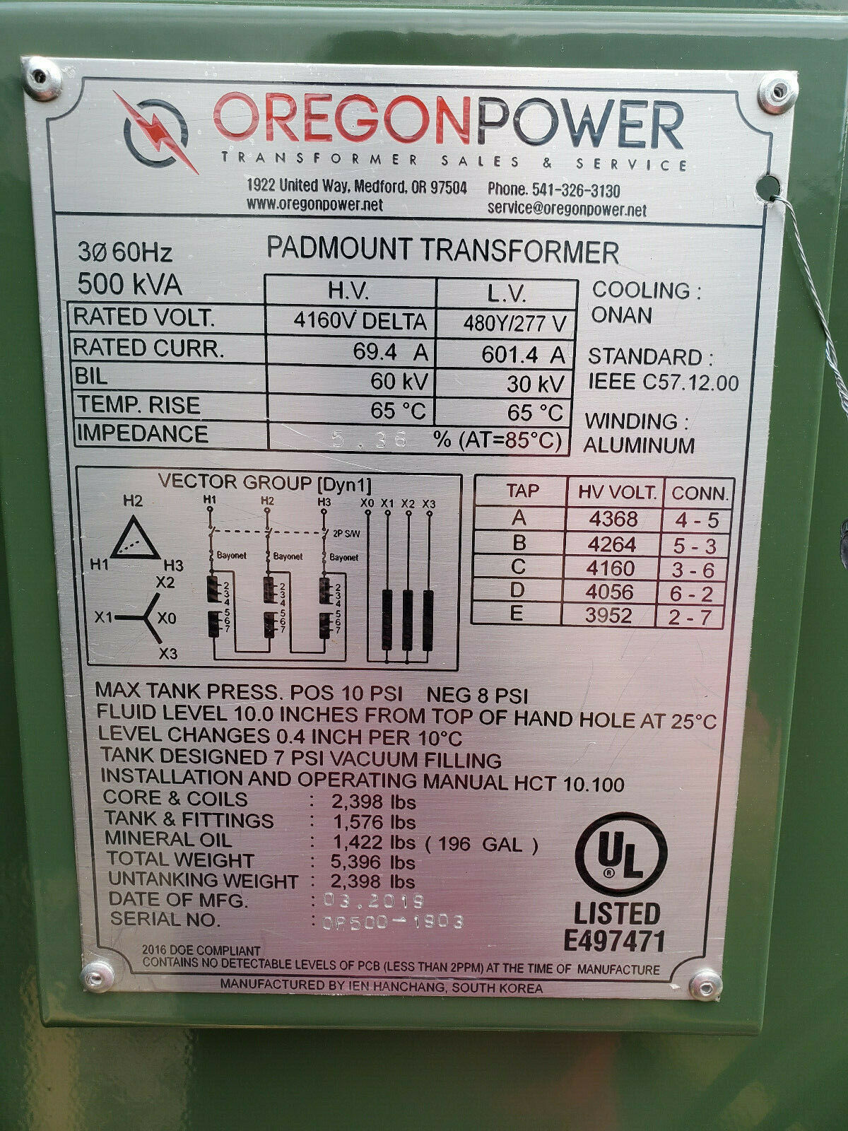 | Voltages | Pri-Voltage : 4160 D | Sec Voltage : 480 Y 277 | Taps : With Taps 2x2.5% Above and Below | |