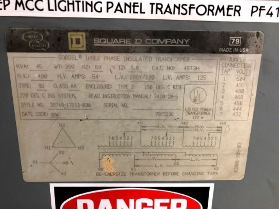 | Voltages | Pri-Voltage : 480 DELTA | Sec Voltage : 208Y/120 | Taps : - | |