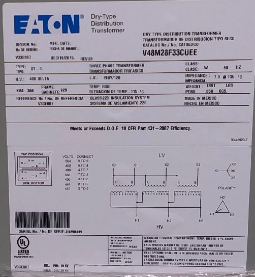 | Voltages | Pri-Voltage : 480 DELTA | Sec Voltage : 208Y/120 | Taps : With Taps | |