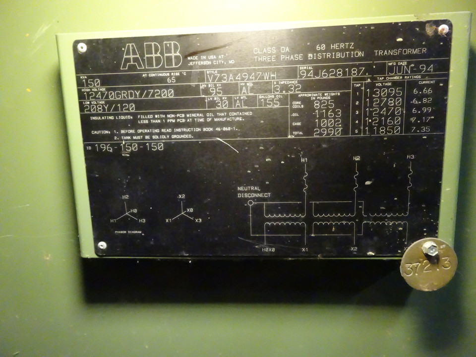 | Voltages | Pri-Voltage : 12470Y/7200 | Sec Voltage : 208Y/120 | Taps : W/Taps 2 X 2 1/2% +/- | |