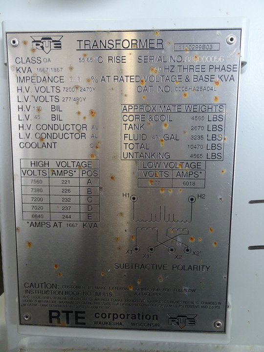 | Voltages | Pri-Voltage : 7200/12470Y | Sec Voltage : 277/480Y | Taps : - | |